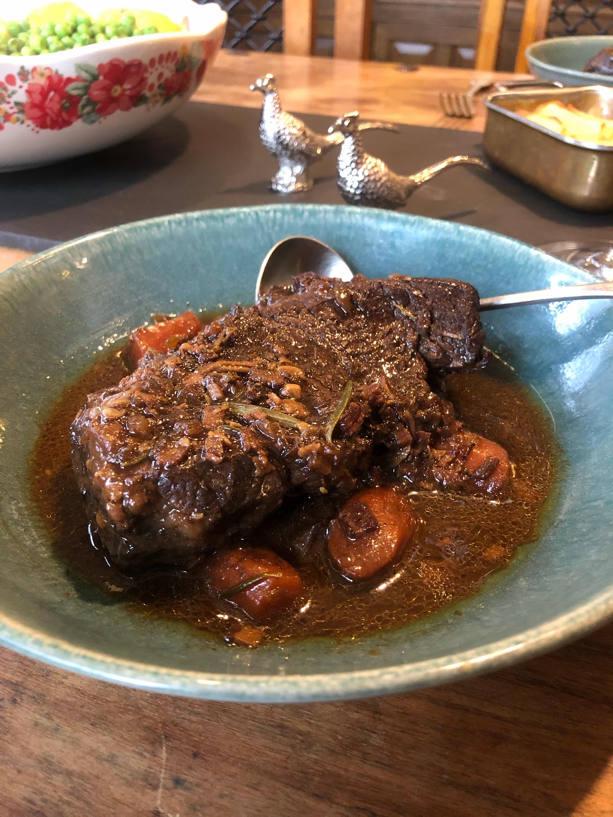 To serve place a generous portion of the mashed potatoes piled high in the centre of your bowl, place the pot roast on top with some carrots and onions then spoon over a generous amount of the stock gravy, serve lots of seasonal vegetables on the side and enjoy.